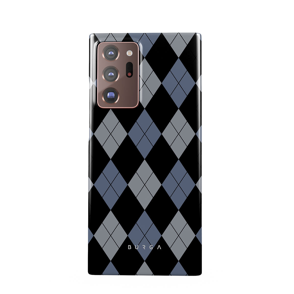 Discover our Trouble Samsung Galaxy Note 20 Ultra 4G / 5G phone case design—a classic argyle pattern featuring stark black diamonds that seamlessly blend with two distinct shades of blue. Made for those who respect the classics but aren't afraid to disrupt the norm.
