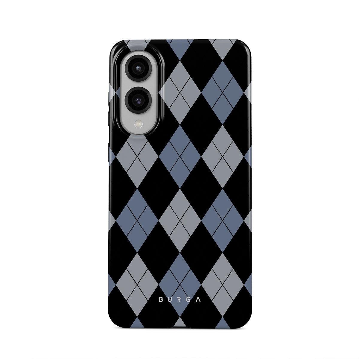 Discover our Trouble Samsung Galaxy S25 Edge phone case design—a classic argyle pattern featuring stark black diamonds that seamlessly blend with two distinct shades of blue. Made for those who respect the classics but aren't afraid to disrupt the norm.