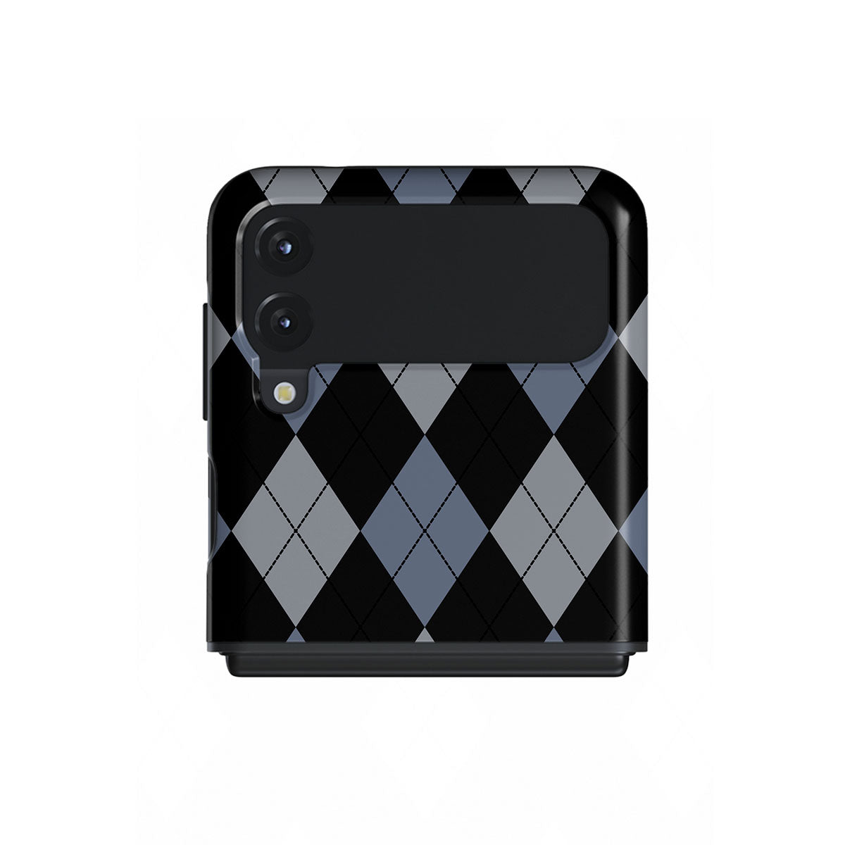 Discover our Trouble Samsung Galaxy Z Flip 3 phone case design—a classic argyle pattern featuring stark black diamonds that seamlessly blend with two distinct shades of blue. Made for those who respect the classics but aren't afraid to disrupt the norm.