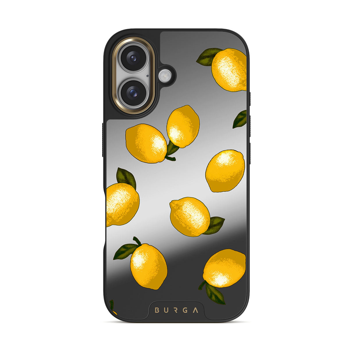 This design features: lemons, citrus, yellow fruit, mirror