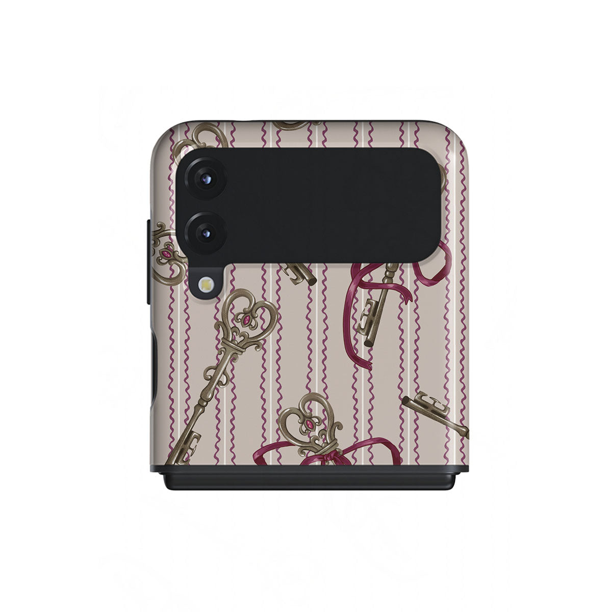Some doors don’t need keys—just a willingness to step through. The Unlocked Samsung Galaxy Z Flip 3 phone case design is a tangle of keys, ribbons, and secrets, waiting for someone curious enough to find out what’s on the other side.