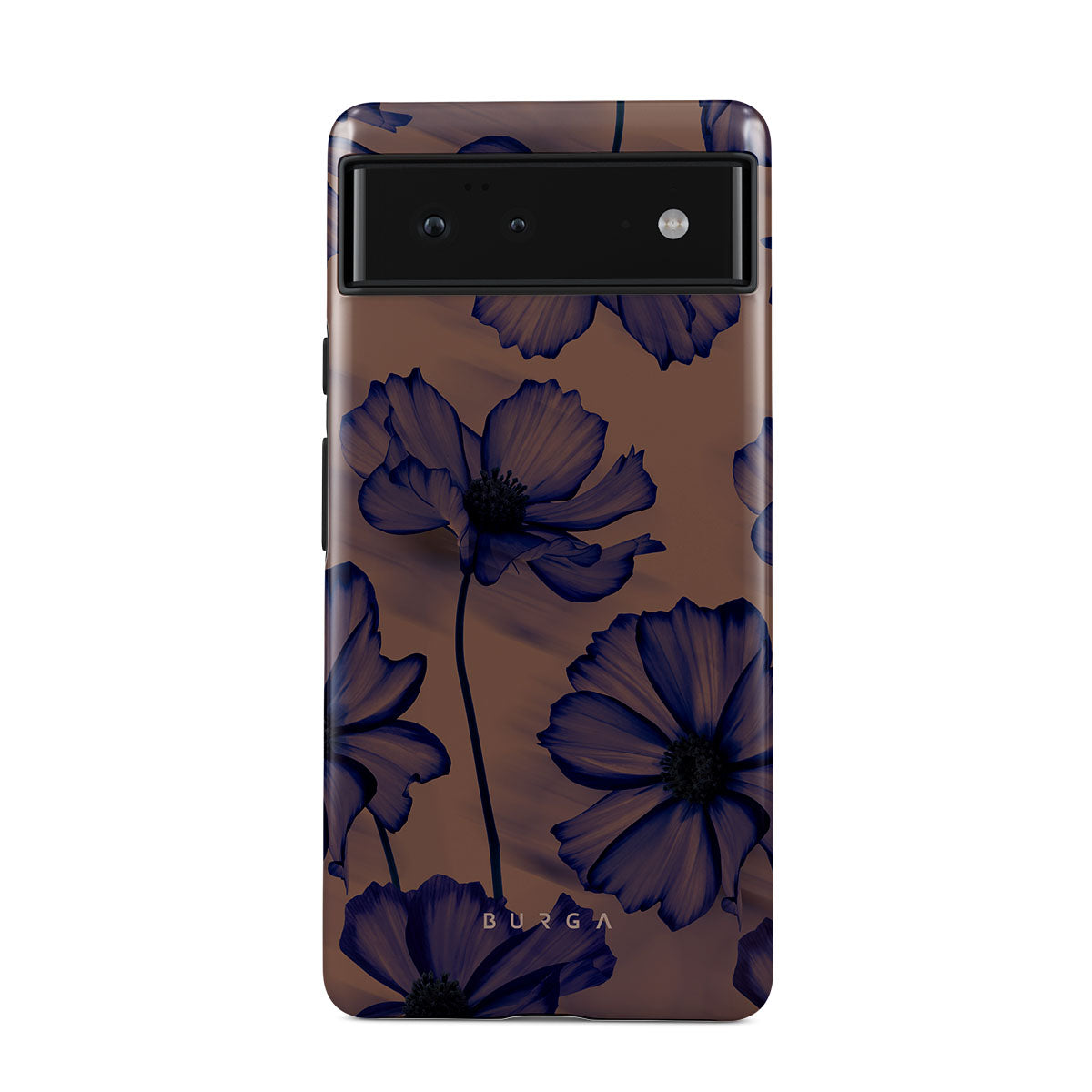 Discover our Velvet Night design. On a soft nude backdrop, blue poppies dance in the untamed rhythm of the wind. A blend of night's peace and daring energy, this Google Pixel 6 phone case is perfect for those who dream big and seek adventure.
