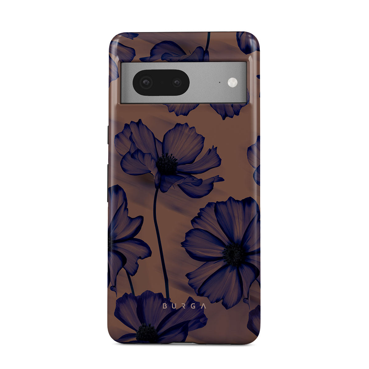 Discover our Velvet Night design. On a soft nude backdrop, blue poppies dance in the untamed rhythm of the wind. A blend of night's peace and daring energy, this Google Pixel 7 phone case is perfect for those who dream big and seek adventure.