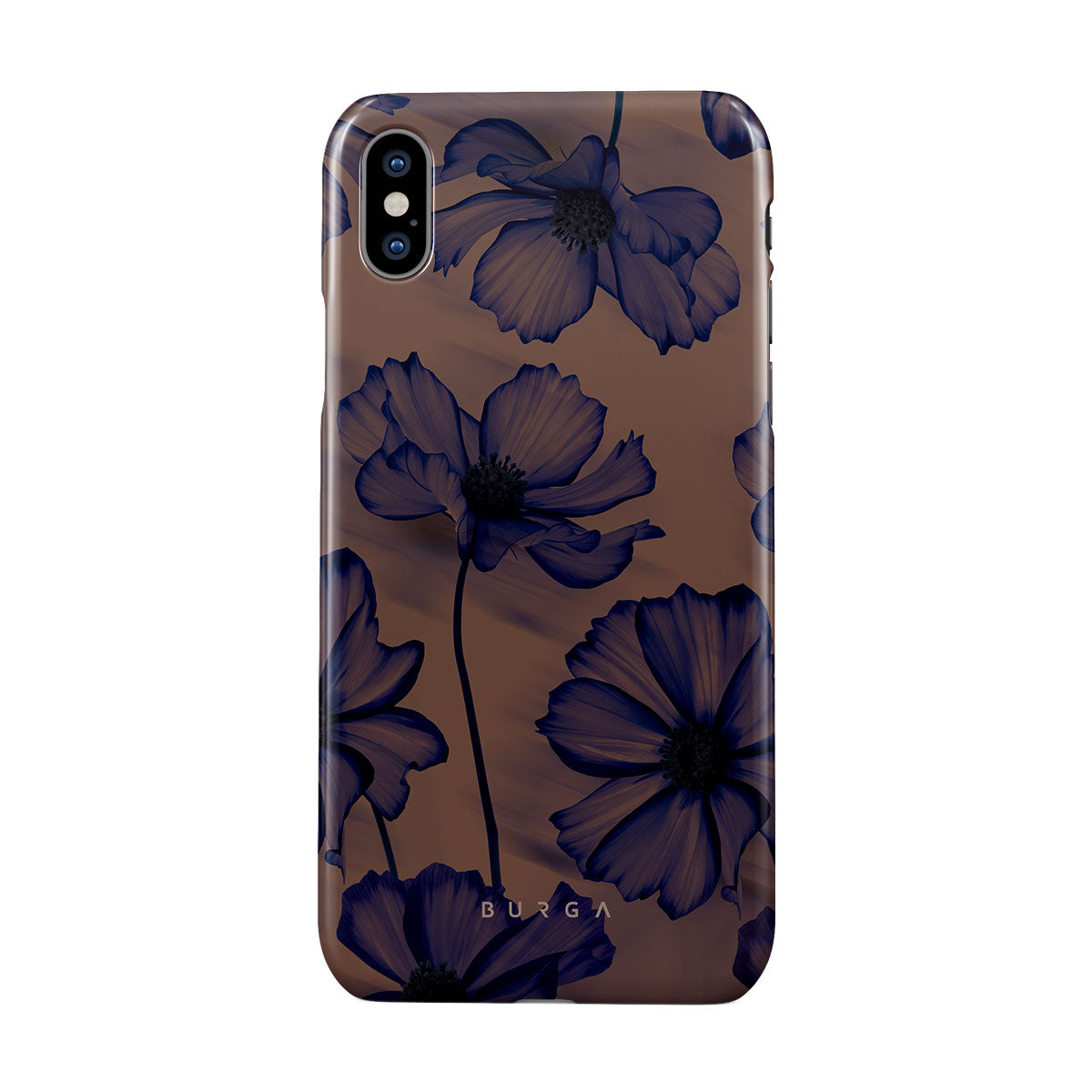 Discover our Velvet Night design. On a soft nude backdrop, blue poppies dance in the untamed rhythm of the wind. A blend of night's peace and daring energy, this iPhone X / XS phone case is perfect for those who dream big and seek adventure.