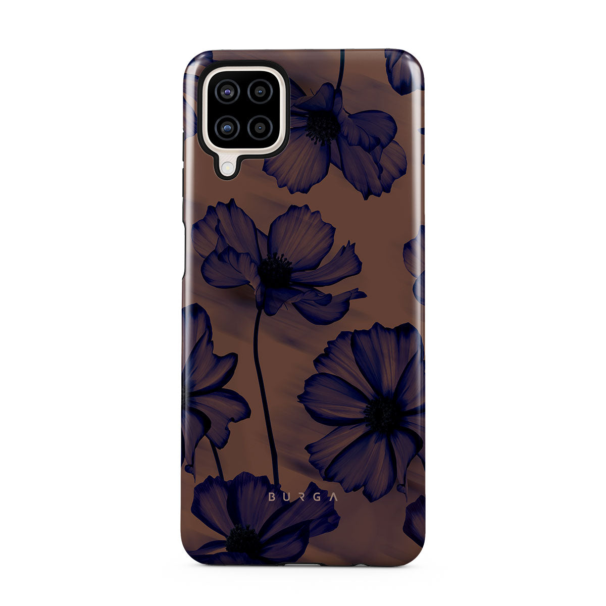 Discover our Velvet Night design. On a soft nude backdrop, blue poppies dance in the untamed rhythm of the wind. A blend of night's peace and daring energy, this Samsung Galaxy A12 4G phone case is perfect for those who dream big and seek adventure.