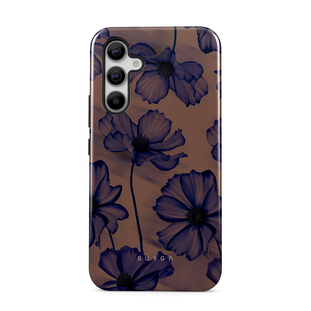 Discover our Velvet Night design. On a soft nude backdrop, blue poppies dance in the untamed rhythm of the wind. A blend of night's peace and daring energy, this Samsung Galaxy A55 phone case is perfect for those who dream big and seek adventure.