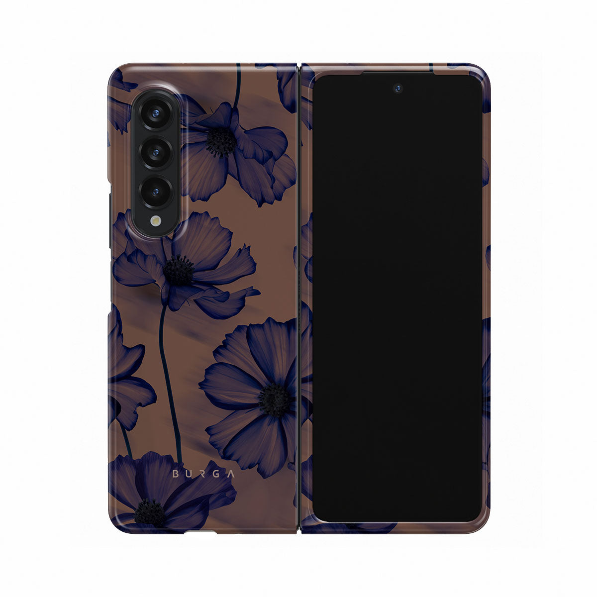 Discover our Velvet Night design. On a soft nude backdrop, blue poppies dance in the untamed rhythm of the wind. A blend of night's peace and daring energy, this Samsung Galaxy Z Fold 3 phone case is perfect for those who dream big and seek adventure.