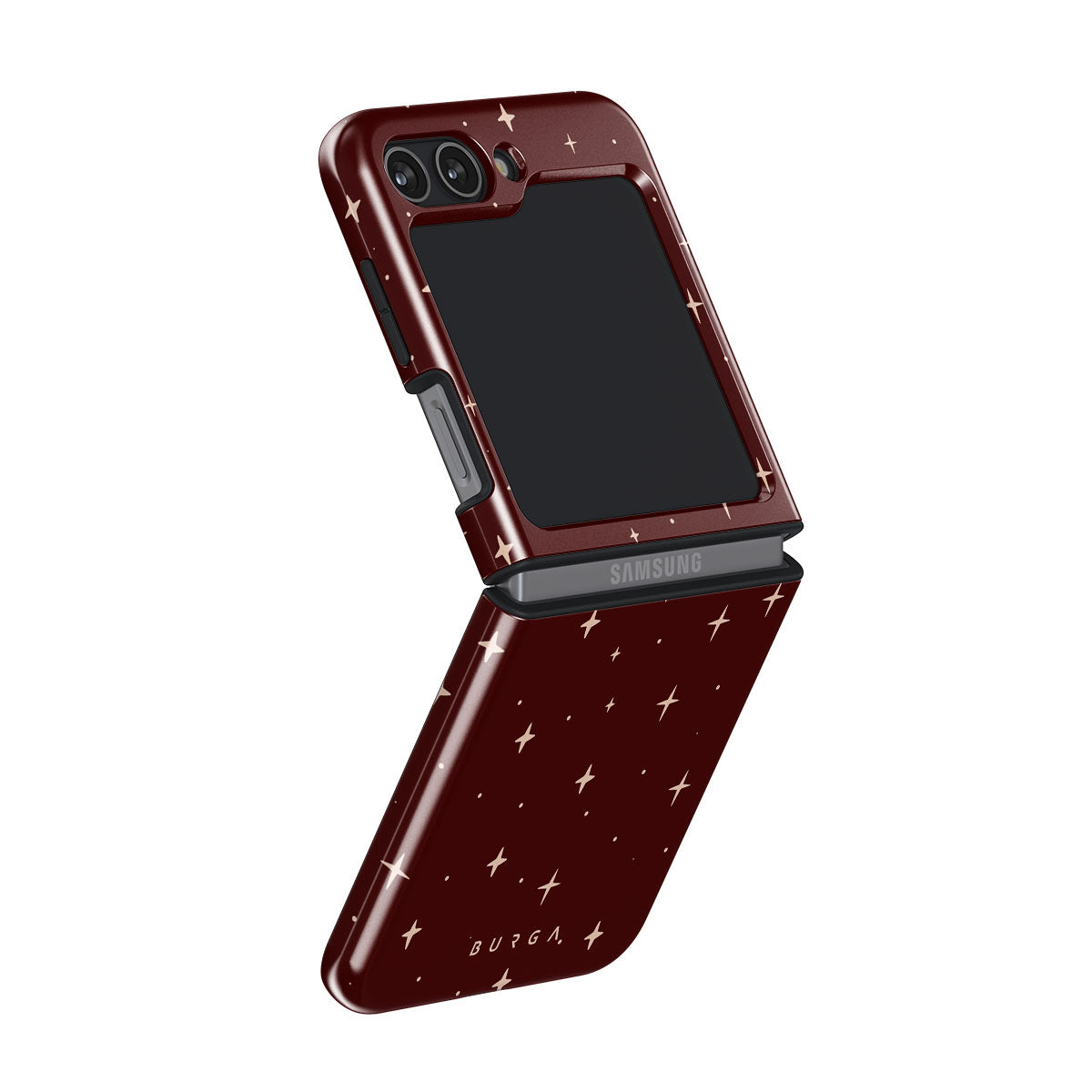 Drenched in radiant red and sprinkled with the sparkle of golden stars. It's like the holiday spirit transformed into art. Meet Very Merry Samsung Galaxy Z Flip 5 Case phone case - a timeless design perfect for everything from festive parties to daily errands.