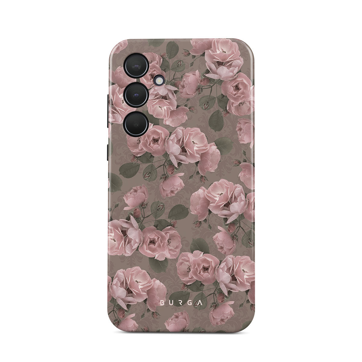 Blush, blooming roses transport you to an era of silent film stars and secret gardens. Our sophisticated Vintage Glamour Samsung Galaxy A35 phone case design is perfect for the romantic at heart. It's for those who speak in glances and sighs and find comfort in the nostalgic whispers of floral romance.