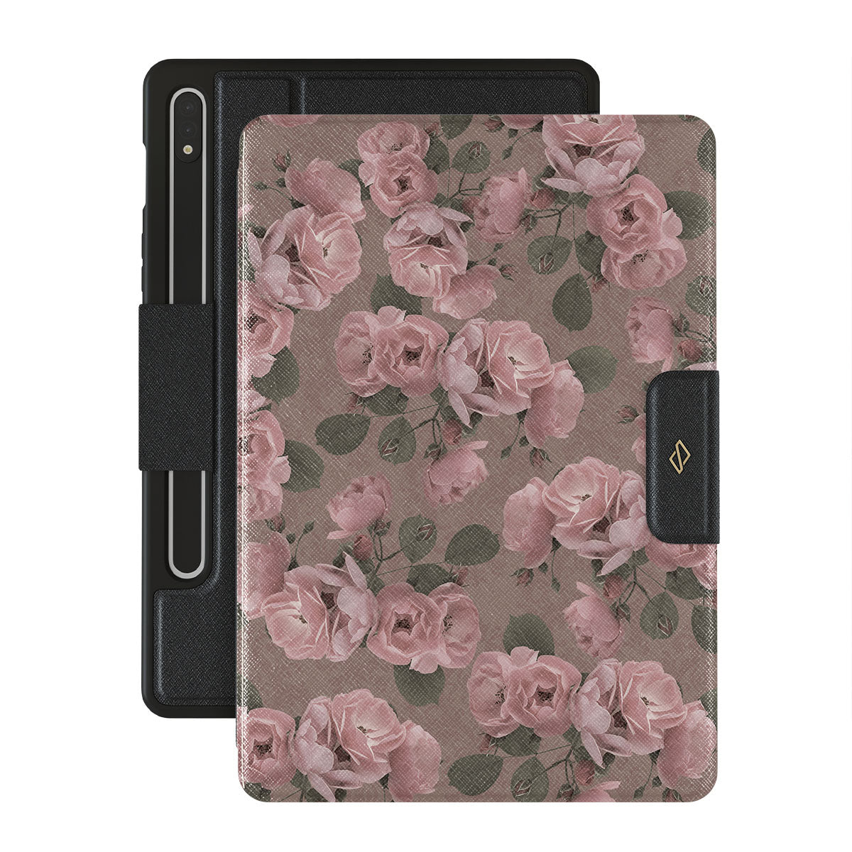 Blush, blooming roses transport you to an era of silent film stars and secret gardens. Our sophisticated Vintage Glamour Samsung Galaxy Tab S10+ folio casedesign is perfect for the romantic at heart. It's for those who speak in glances and sighs and find comfort in the nostalgic whispers of floral romance.