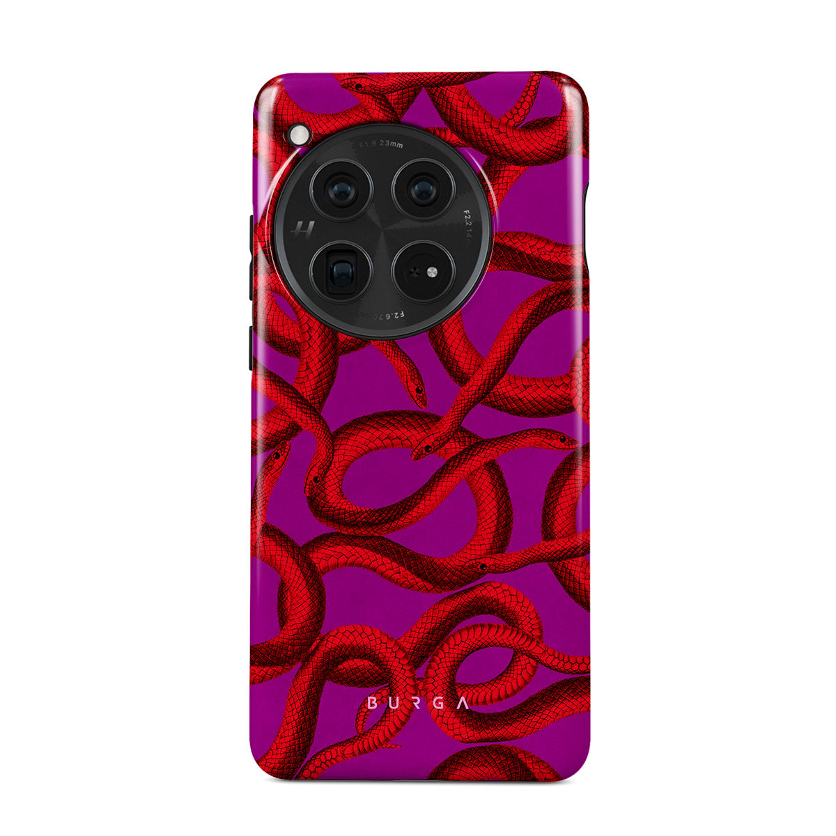 Watch Out OnePlus 12 phone case design offers a fierce feel with a bright magenta colored background covered in red snakes pattern. Make a statement while protecting your phone, as this case is guaranteed to catch everyone's eye.
