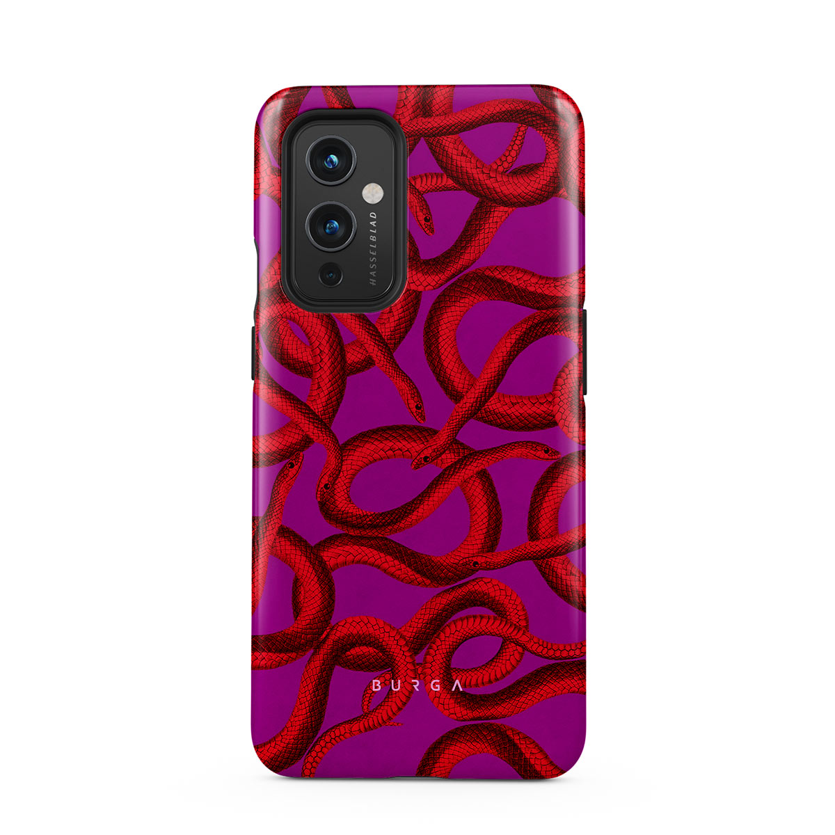 Watch Out OnePlus 9 phone case design offers a fierce feel with a bright magenta colored background covered in red snakes pattern. Make a statement while protecting your phone, as this case is guaranteed to catch everyone's eye.