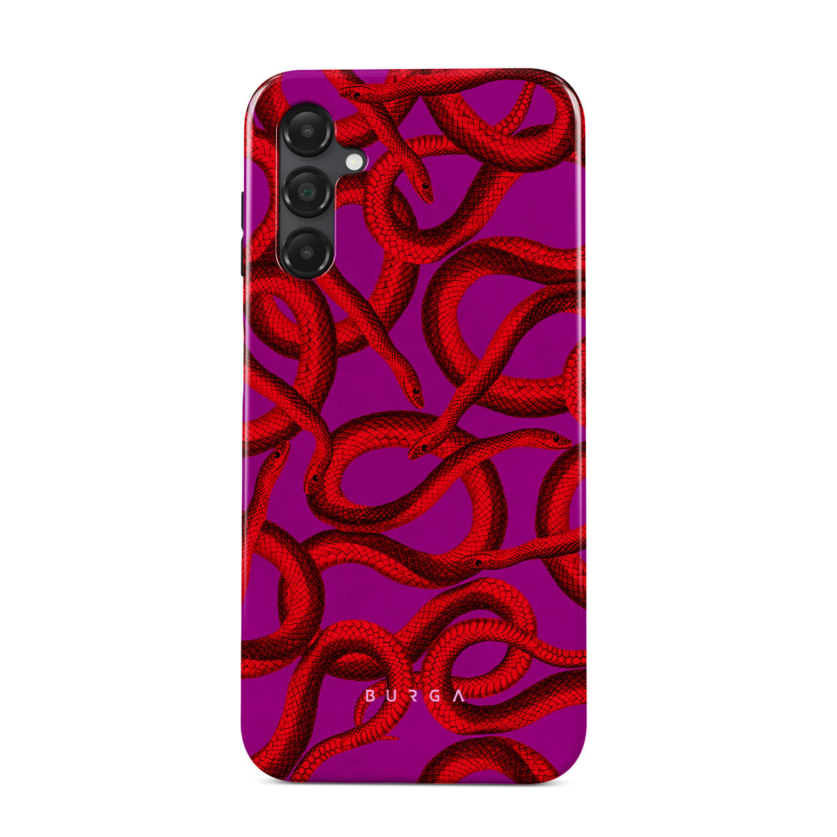 Watch Out Samsung Galaxy A14 5G phone case design offers a fierce feel with a bright magenta colored background covered in red snakes pattern. Make a statement while protecting your phone, as this case is guaranteed to catch everyone's eye.