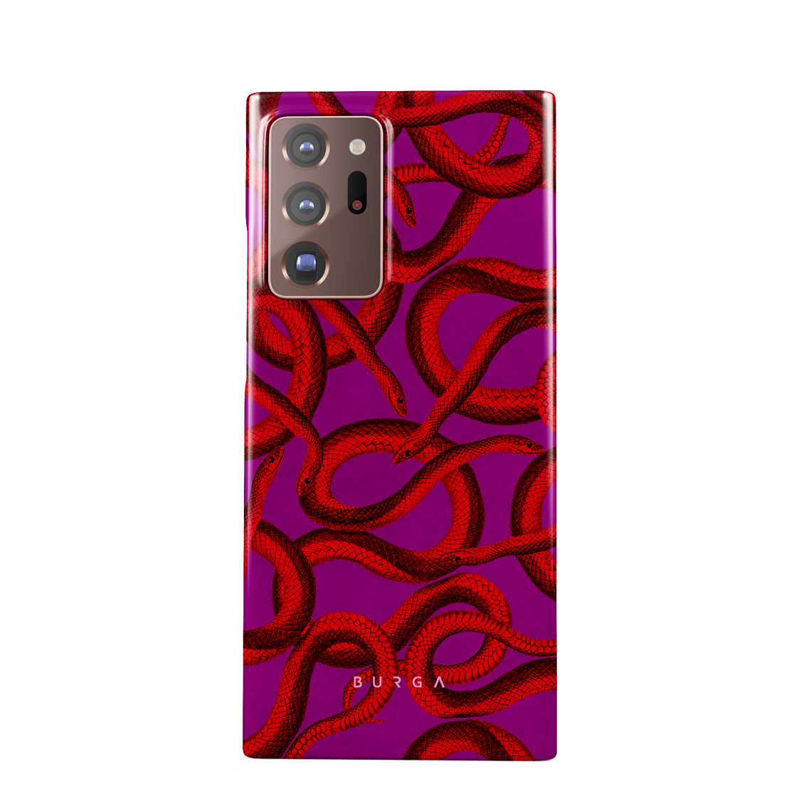 Watch Out Samsung Galaxy Note 20 Ultra 4G / 5G phone case design offers a fierce feel with a bright magenta colored background covered in red snakes pattern. Make a statement while protecting your phone, as this case is guaranteed to catch everyone's eye.