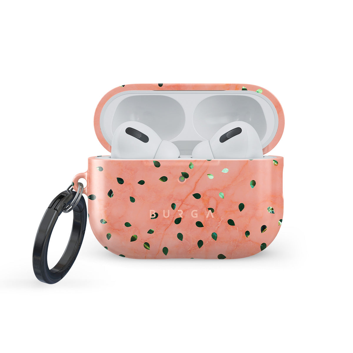 A playful take on design merging can be seen in our Watermelon Shake Apple AirPods Pro 3 case cover. The watermelon seed-like specks showcase striking tropical design fragments that add a splash of color to the soft coral marble design. The unique case cover becomes a perfect statement piece for your summer outfits. Our case fits perfectly snug around Apple AirPods Pro 3 . “Like a glove!” one might say. And it won’t disrupt the wireless charging capabilities of the newer model. There’s even an LED light indicator to prove it (don’t worry, wired charging still works, too). When fitted, the BURGA case will protect the delicate Apple AirPods Pro 3 case beneath it from scratches, bumps, and drops while remaining scratch-free itself. Our signature design pattern prints are High Quality, and will never peel or fade away- thanks to our unique printing technology. And finally, a handy carabiner is there to make your life easier and more convenient: just snap it around your keys or belt loop and tackle the day head-on. Your music is right there by your side when you need it.