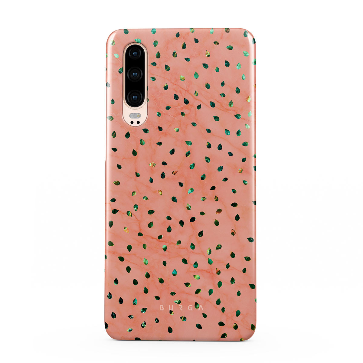 The Watermelon Shake Huawei P30 phone case offers a playful take on design merging. The watermelon seed-like specks showcase striking tropical design fragments that add a splash of color to the fresh and breezy coral pink marble. This way, the funny protective phone cover becomes a perfect statement piece for your summer outfits.