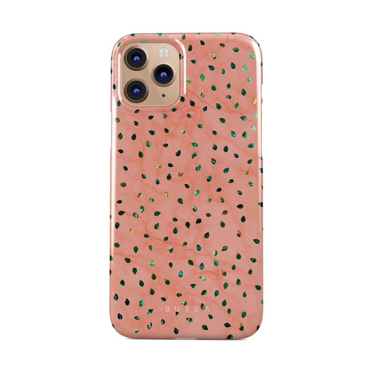The Watermelon Shake iPhone 11 Pro phone case offers a playful take on design merging. The watermelon seed-like specks showcase striking tropical design fragments that add a splash of color to the fresh and breezy coral pink marble. This way, the funny protective phone cover becomes a perfect statement piece for your summer outfits.
