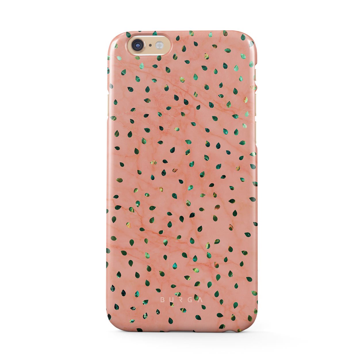 The Watermelon Shake iPhone 6 / 6S phone case offers a playful take on design merging. The watermelon seed-like specks showcase striking tropical design fragments that add a splash of color to the fresh and breezy coral pink marble. This way, the funny protective phone cover becomes a perfect statement piece for your summer outfits.