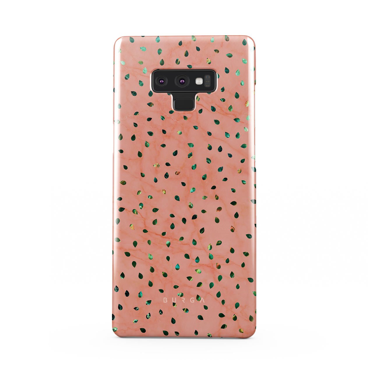 The Watermelon Shake Samsung Galaxy Note 9 phone case offers a playful take on design merging. The watermelon seed-like specks showcase striking tropical design fragments that add a splash of color to the fresh and breezy coral pink marble. This way, the funny protective phone cover becomes a perfect statement piece for your summer outfits.