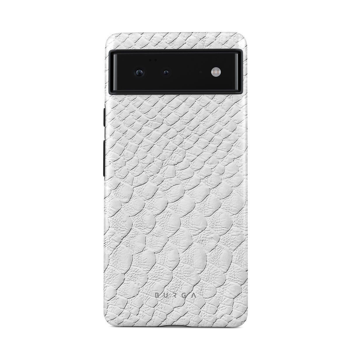 Glacial Desert Google Pixel 6a phone case features snakeskin design in glacial white color. The dangerous animal print will add confidence and a touch of luxury to your style while transforming your phone into a fashion accessory.