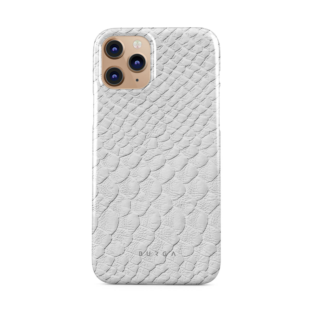 Glacial Desert iPhone 11 Pro Max phone case features snakeskin design in glacial white color. The dangerous animal print will add confidence and a touch of luxury to your style while transforming your phone into a fashion accessory.