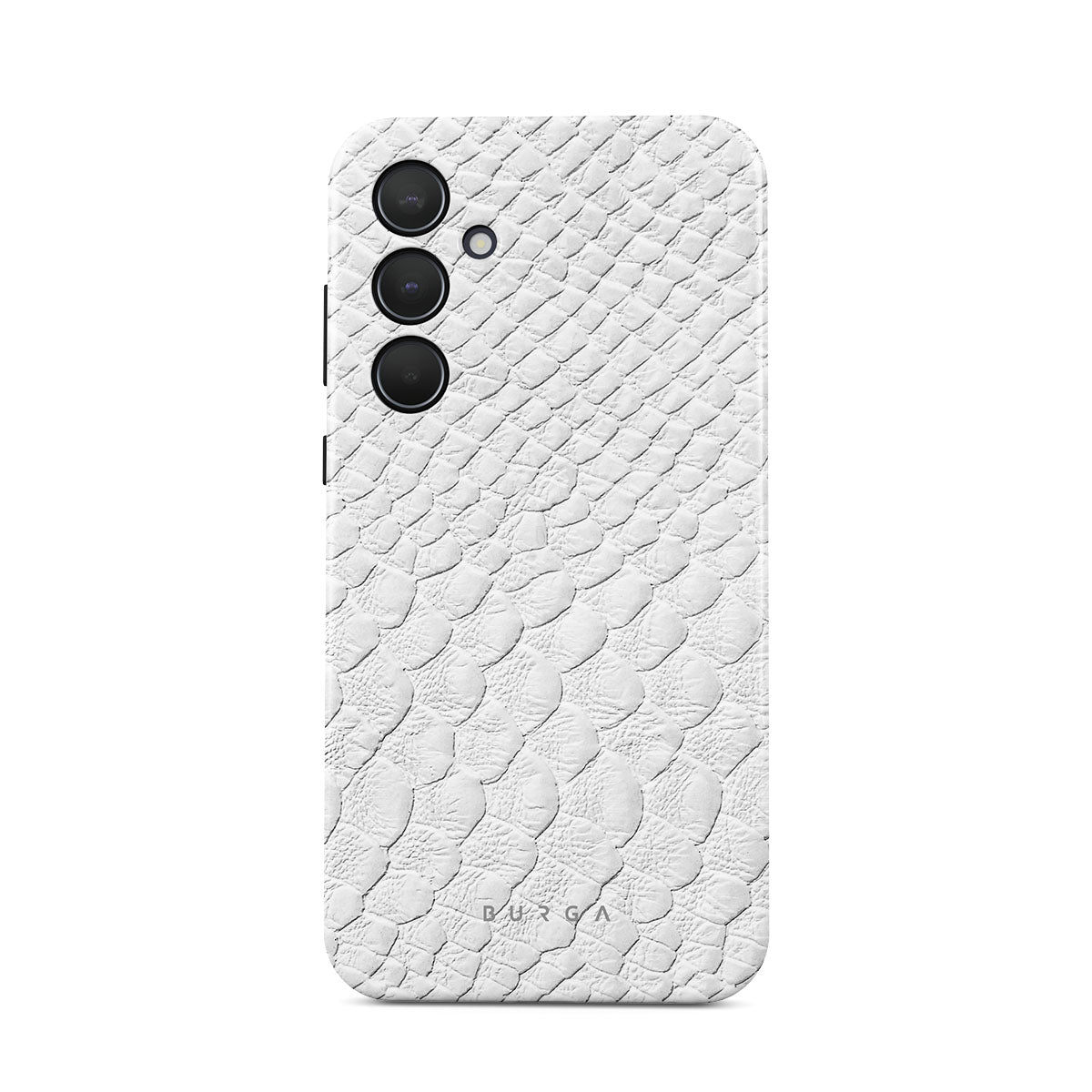 Glacial Desert Samsung Galaxy A51 phone case features snakeskin design in glacial white color. The dangerous animal print will add confidence and a touch of luxury to your style while transforming your phone into a fashion accessory.