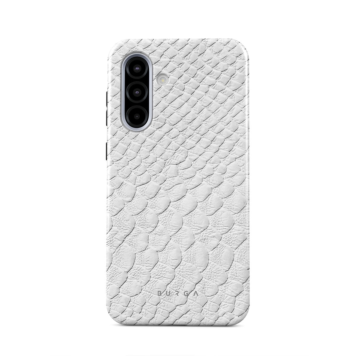 Glacial Desert Samsung Galaxy A56 5G phone case features snakeskin design in glacial white color. The dangerous animal print will add confidence and a touch of luxury to your style while transforming your phone into a fashion accessory.