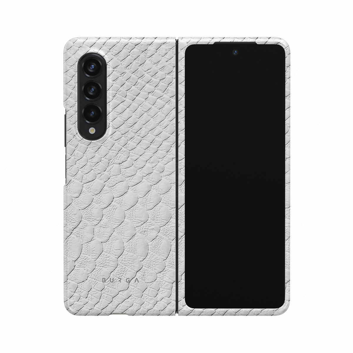 Glacial Desert Samsung Galaxy Z Fold 3 phone case features snakeskin design in glacial white color. The dangerous animal print will add confidence and a touch of luxury to your style while transforming your phone into a fashion accessory.