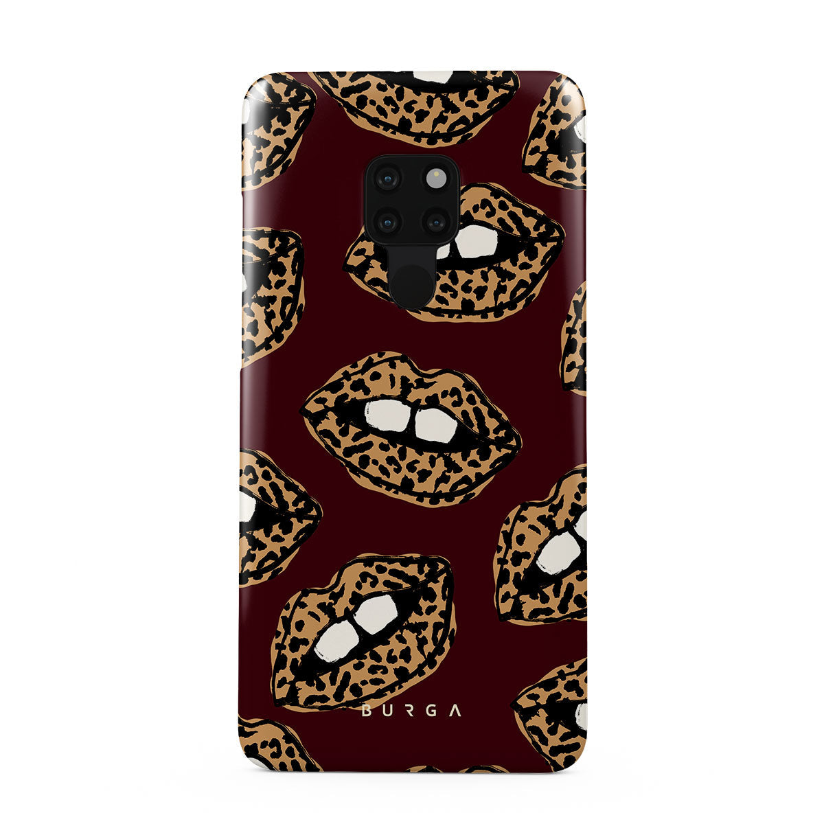 This design features: leopard print, lips, open lips, colored lips