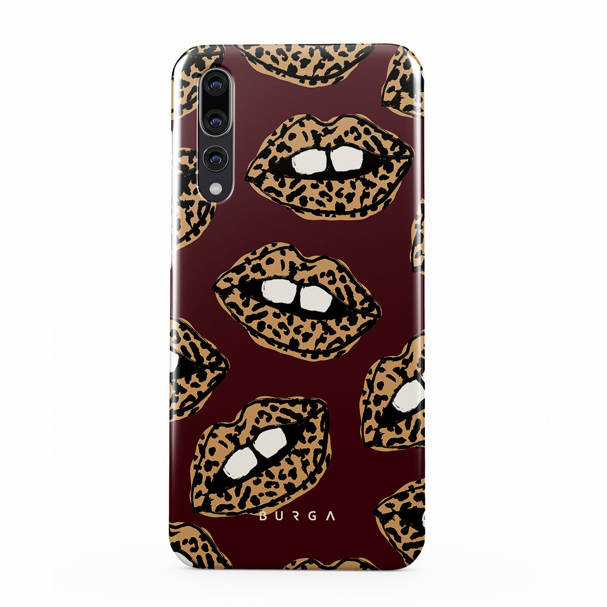 This design features: leopard print, lips, open lips, colored lips