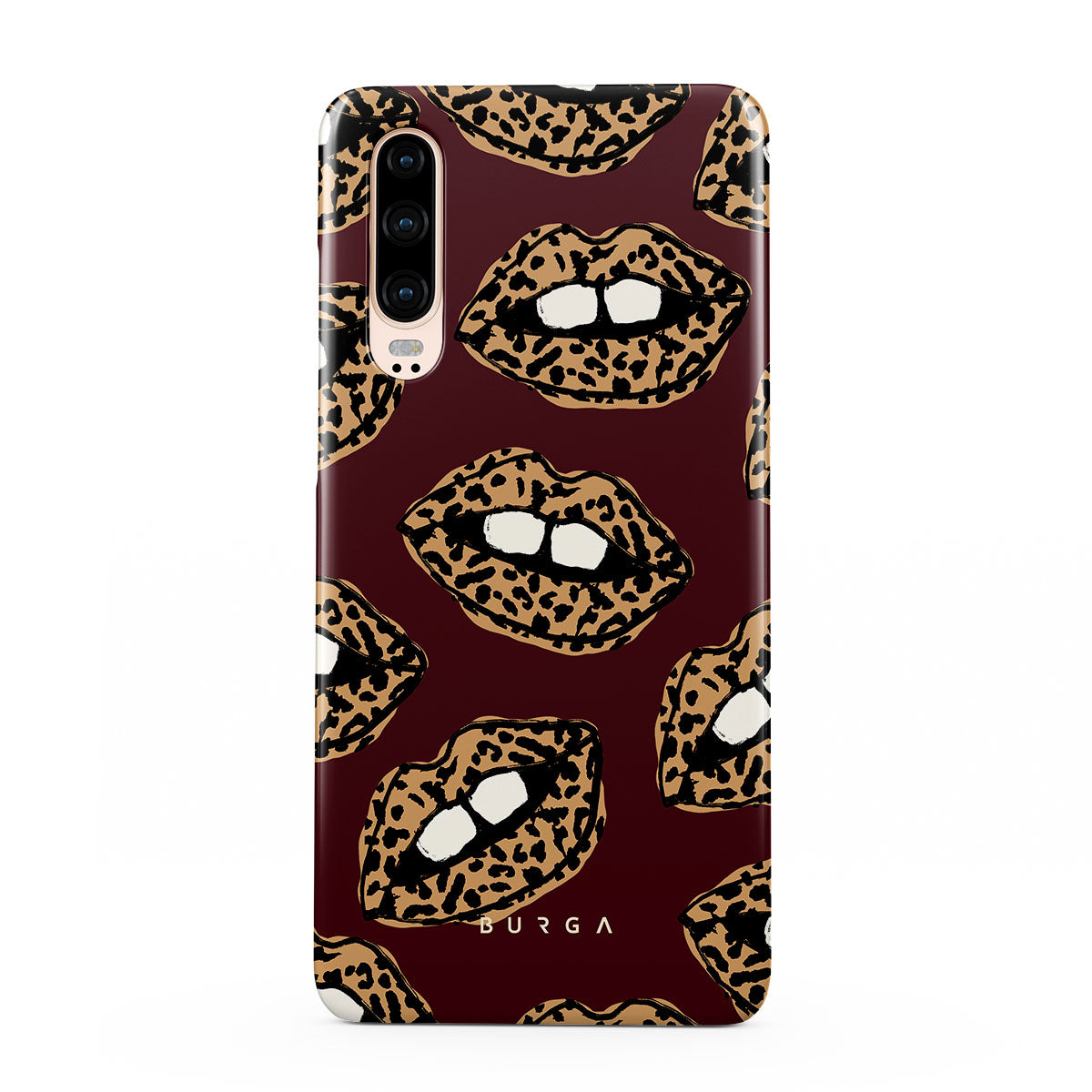 This design features: leopard print, lips, open lips, colored lips