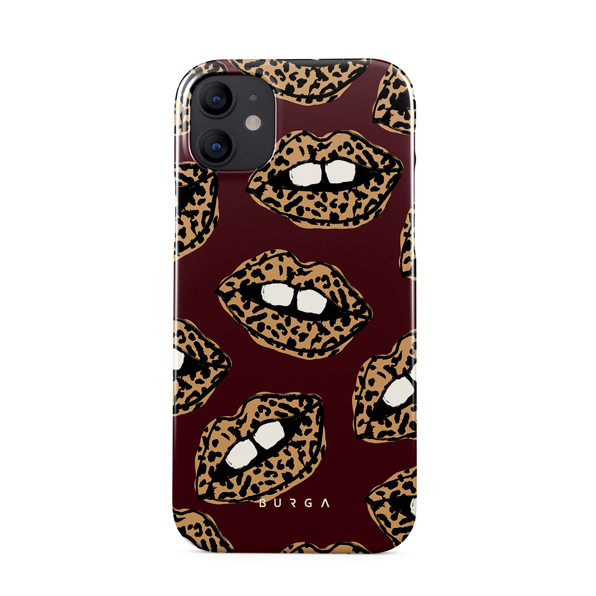 This design features: leopard print, lips, open lips, colored lips