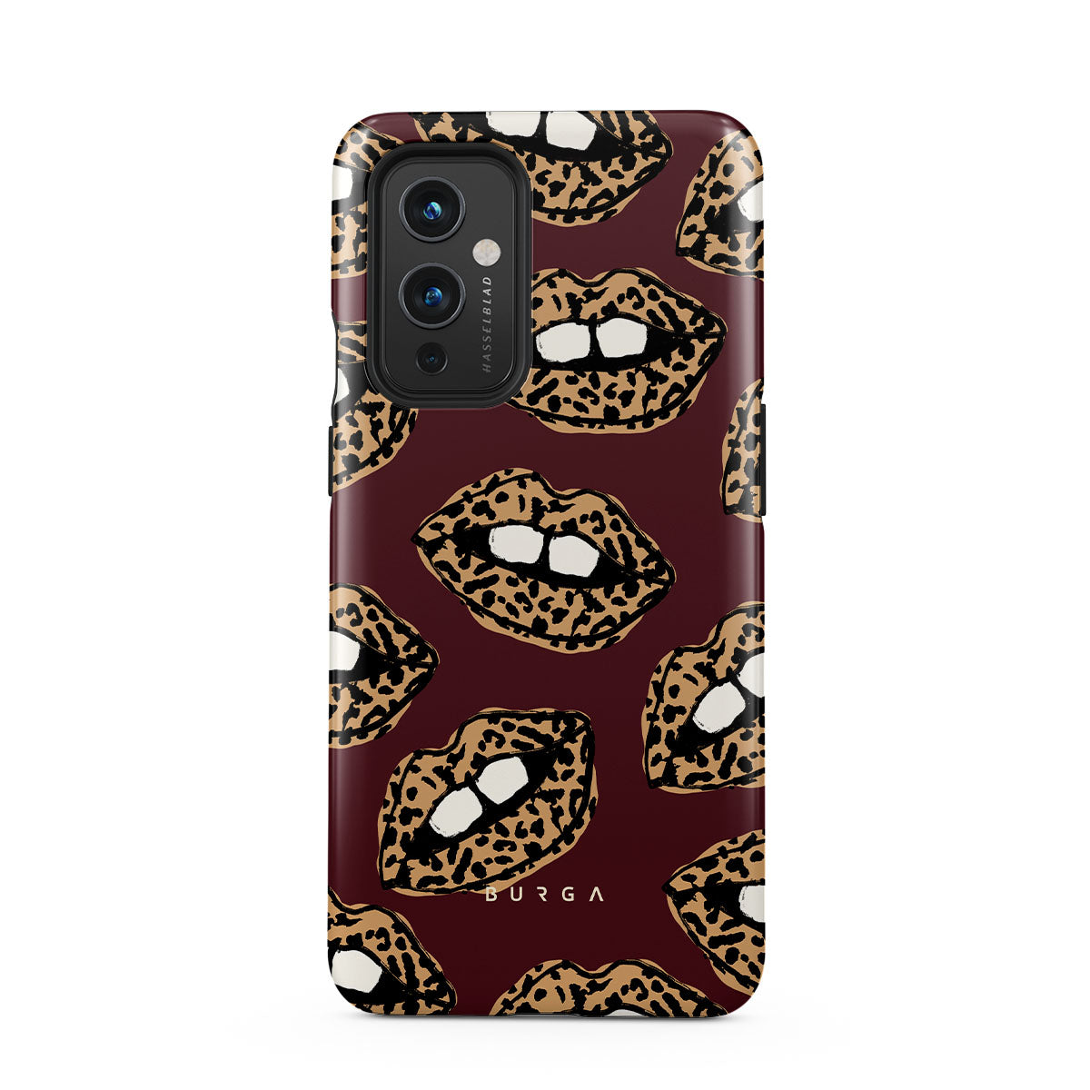This design features: leopard print, lips, open lips, colored lips