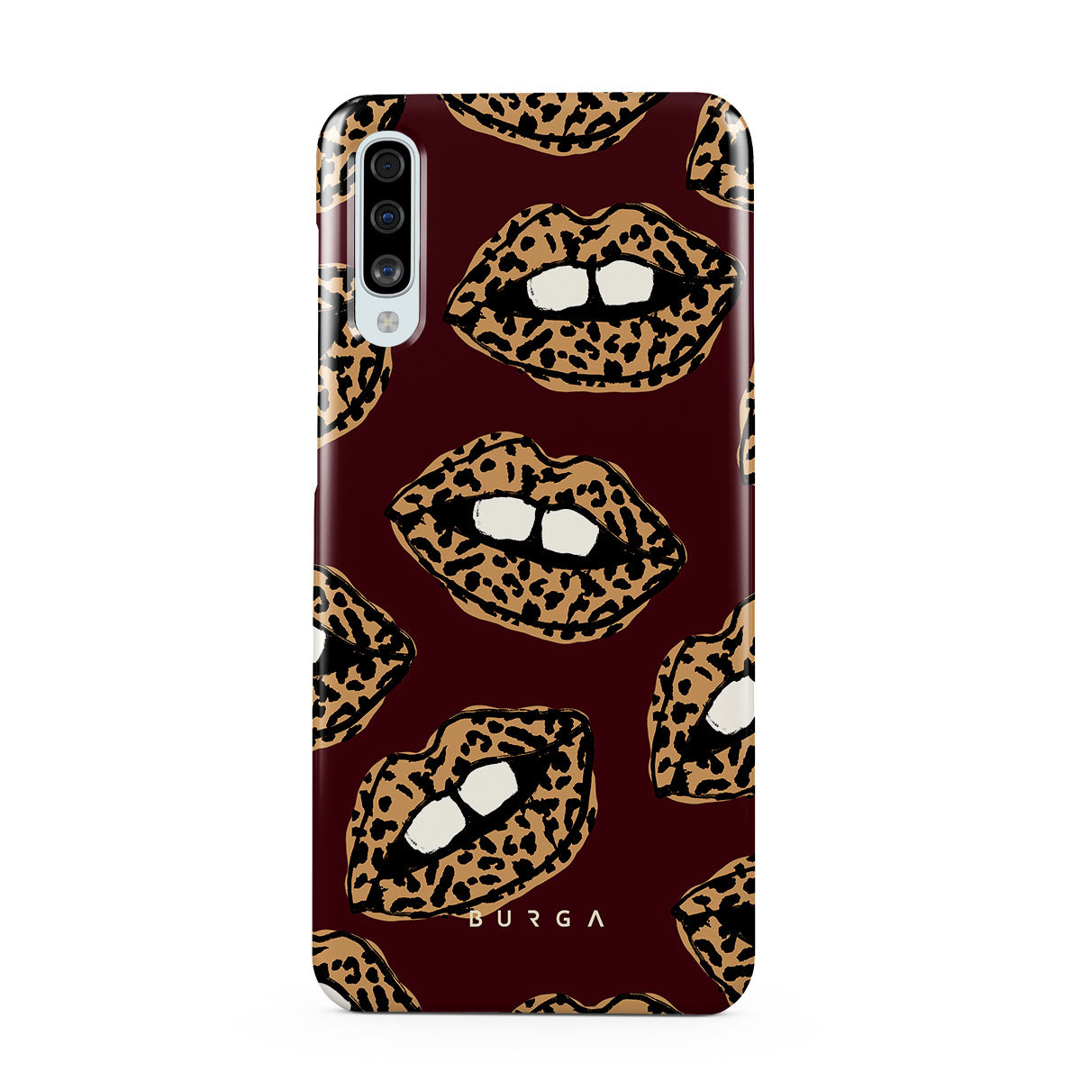 This design features: leopard print, lips, open lips, colored lips