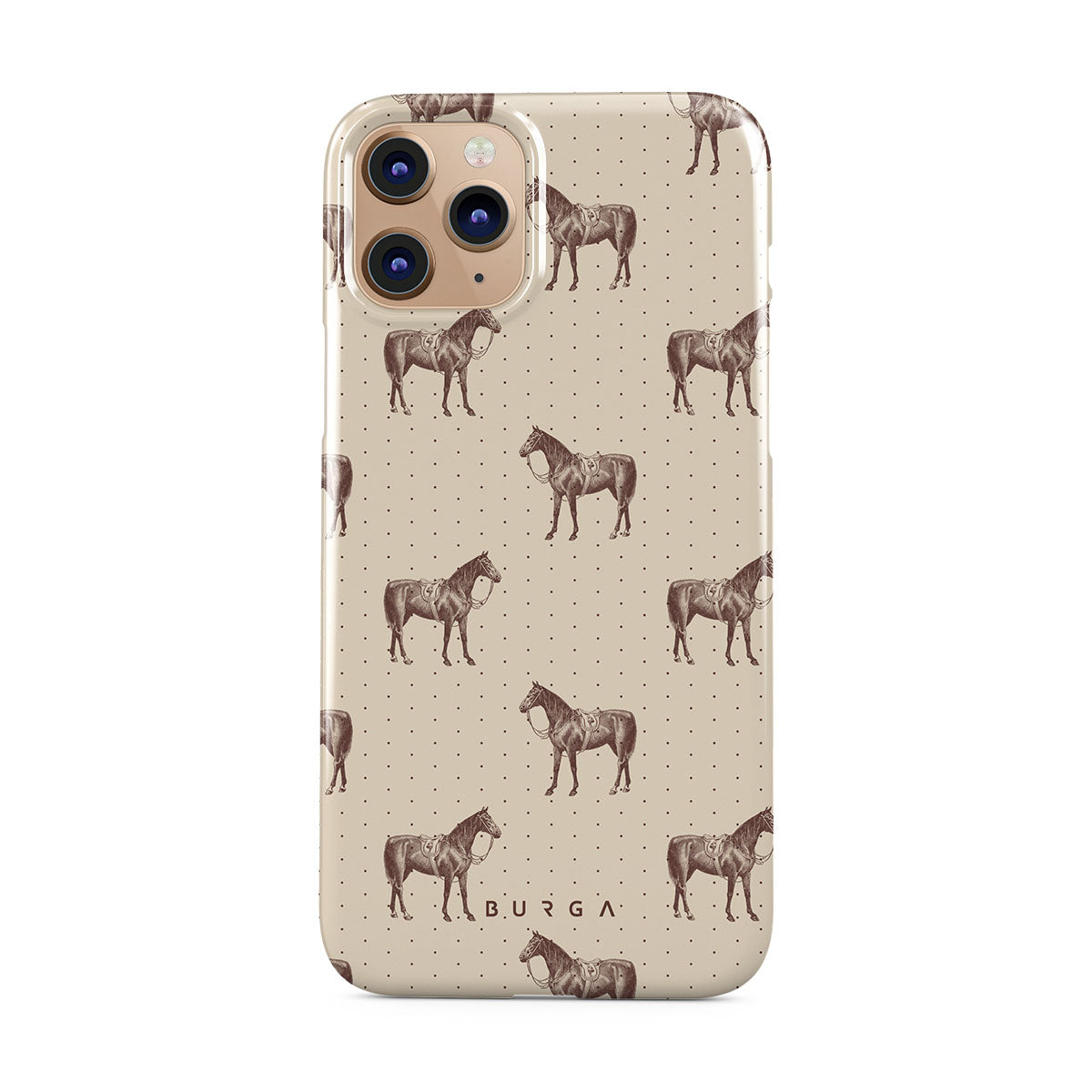 Life might feel like the Wild West sometimes, but your look can still be on point. With beautiful horses on a classic nude background, this iPhone 11 Pro phone case design is the one for those who ride free and stylish.