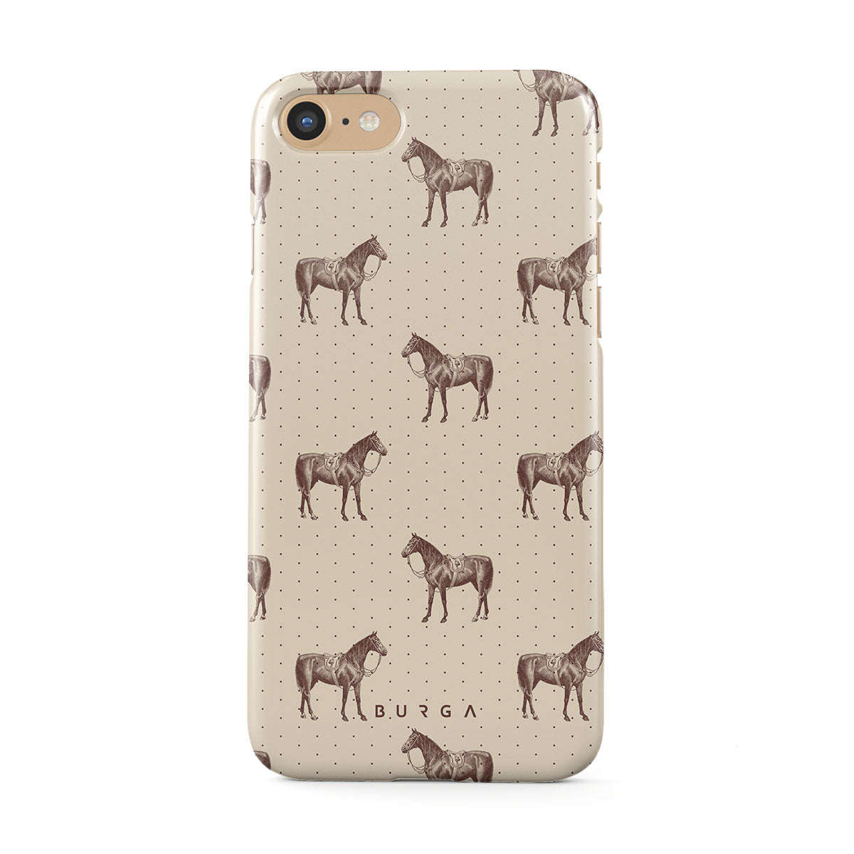 Life might feel like the Wild West sometimes, but your look can still be on point. With beautiful horses on a classic nude background, this iPhone SE (2020) phone case design is the one for those who ride free and stylish.