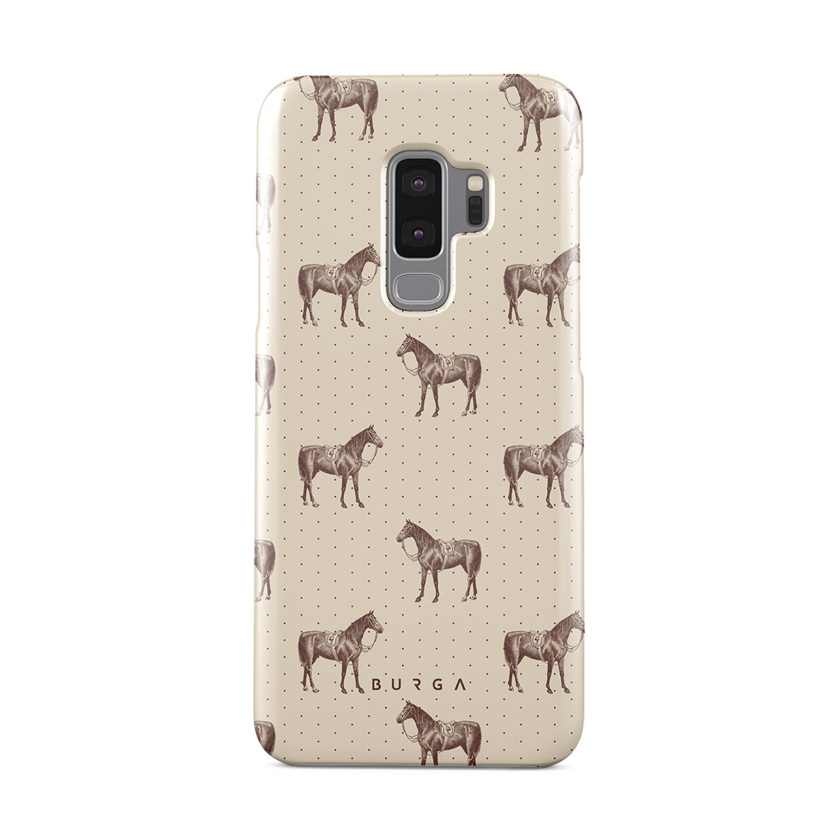 Life might feel like the Wild West sometimes, but your look can still be on point. With beautiful horses on a classic nude background, this Samsung Galaxy S9 Plus phone case design is the one for those who ride free and stylish.