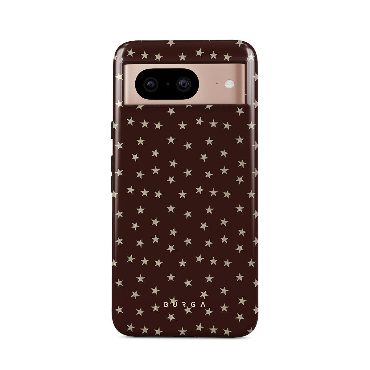 Our Wonderland Google Pixel 8 phone case design glistens like a frosty winter night, where the magic of the season lights up the sky. Step into a snowfall of stars with every glance.
