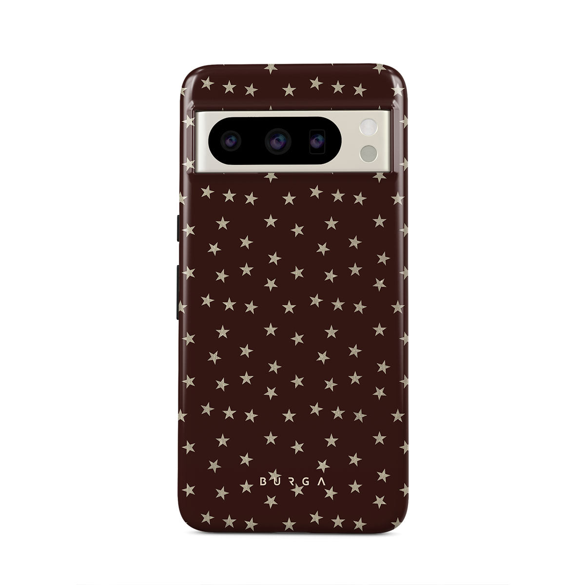 Our Wonderland Google Pixel 8 Pro phone case design glistens like a frosty winter night, where the magic of the season lights up the sky. Step into a snowfall of stars with every glance.