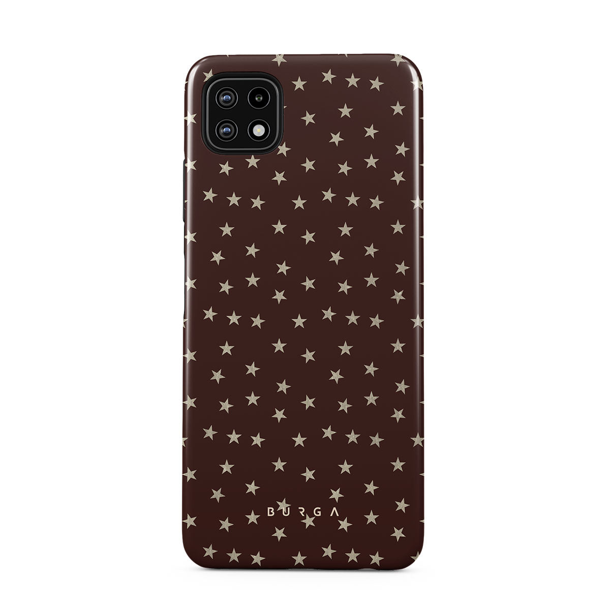 Our Wonderland Samsung Galaxy A22 5G phone case design glistens like a frosty winter night, where the magic of the season lights up the sky. Step into a snowfall of stars with every glance.