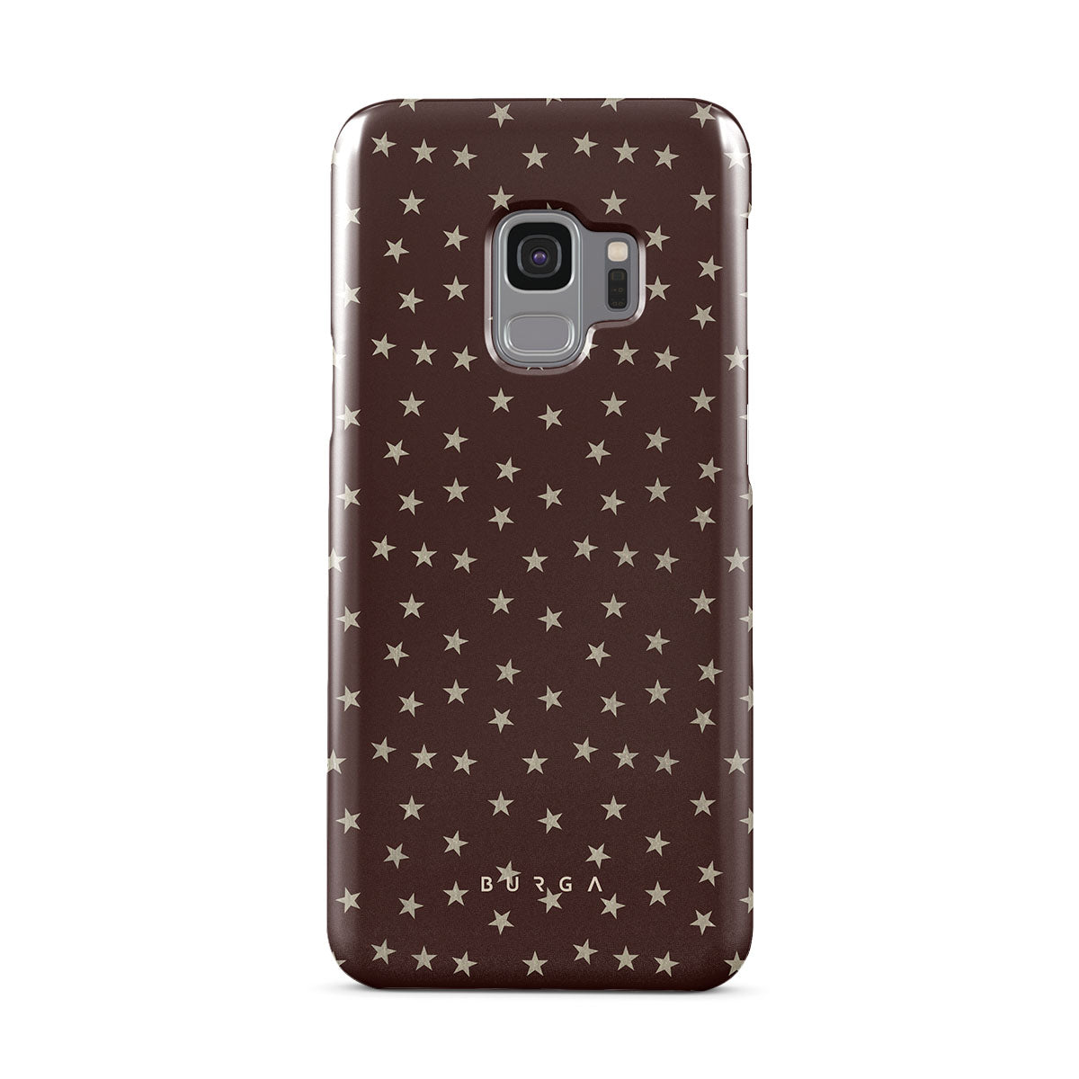 Our Wonderland Samsung Galaxy S9 phone case design glistens like a frosty winter night, where the magic of the season lights up the sky. Step into a snowfall of stars with every glance.