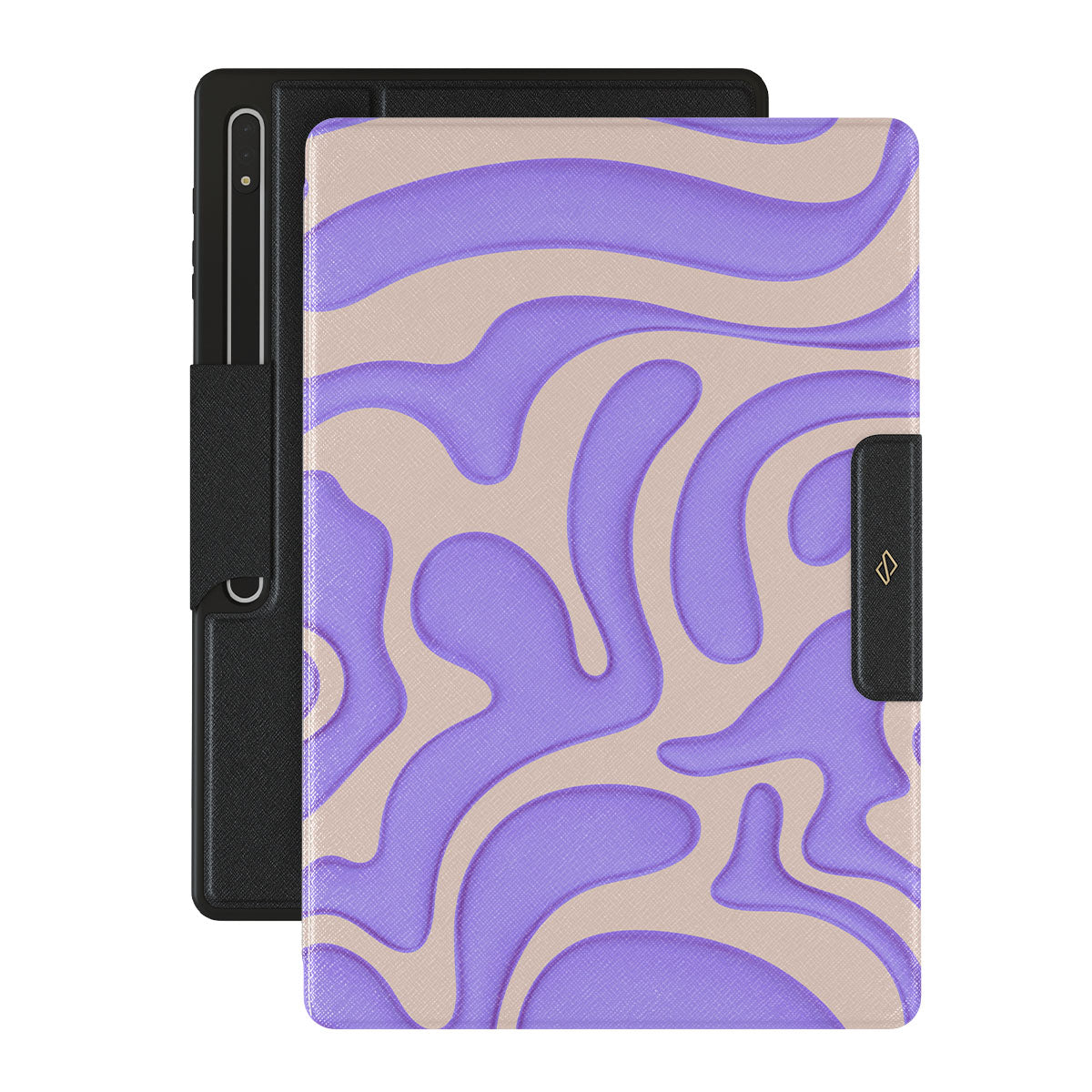 With a blend of retro and contemporary style, the Y2Kool folio case is the perfect accessory for anyone looking to make a statement. Drawing inspiration from the colorful and vibrant Y2K era, this case features pastel-toned metallic purple swirls that evoke memories of butterfly hair clips, platform shoes, and boy bands.