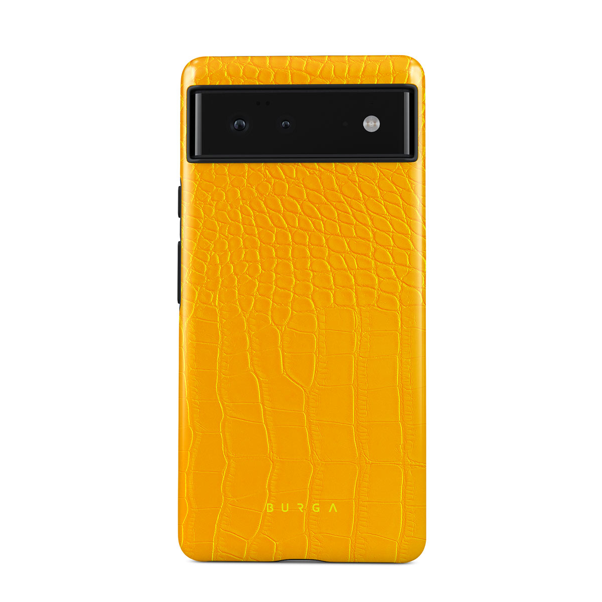 Our Canary Yellow Google Pixel 6a phone case features a classic snake design reimagined and showcased in bright yellow. The new take on the dangerous animal print will add confidence and a touch of color to your style while transforming your protective phone case into a fashion accessory.