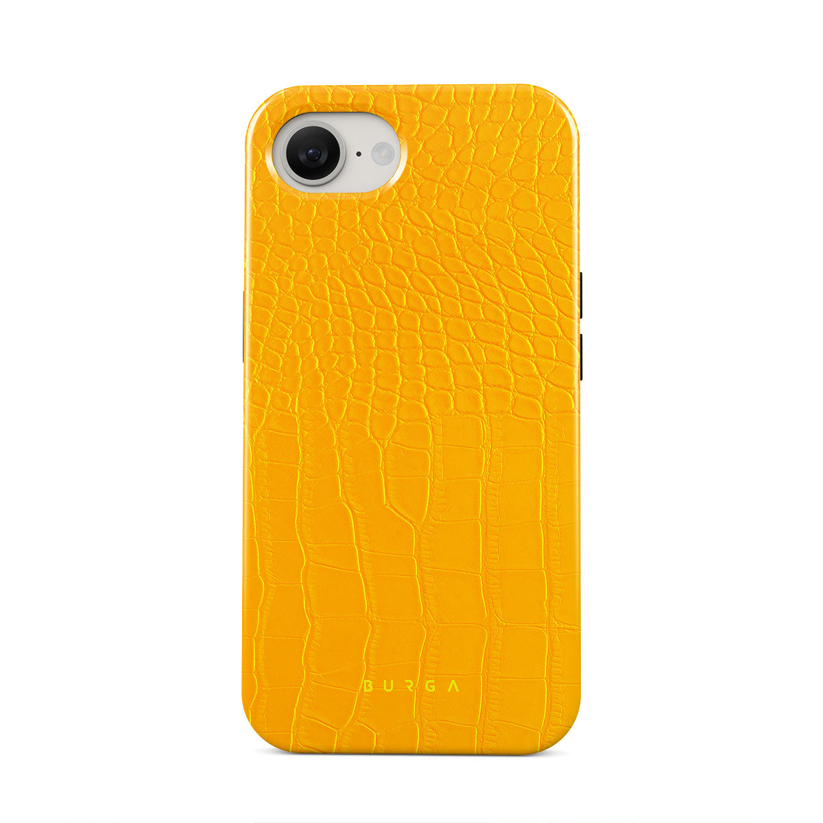 Our Canary Yellow iPhone 16e phone case features a classic snake design reimagined and showcased in bright yellow. The new take on the dangerous animal print will add confidence and a touch of color to your style while transforming your protective phone case into a fashion accessory.