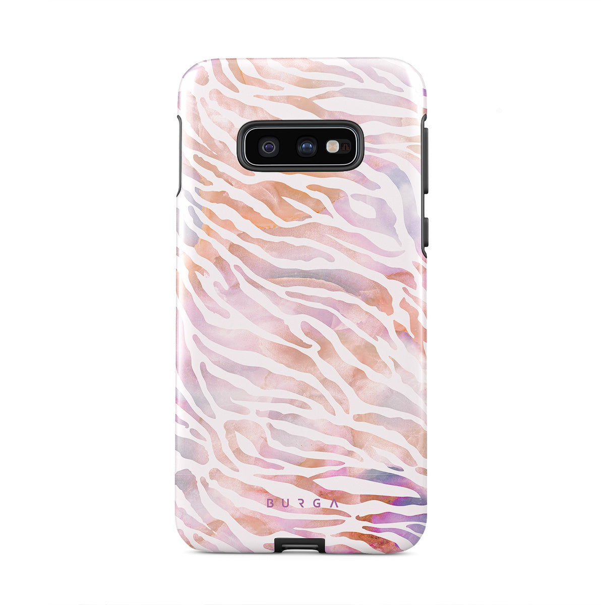 Sultry July Samsung Galaxy S10E phone case combines an exotic zebra pattern with the softest shades of pink. The Zebra pattern adds a touch of energy, while pinks will emphasize a softer side. This trendy phone case will keep your cellphone safe and sound from any falls or scratches.