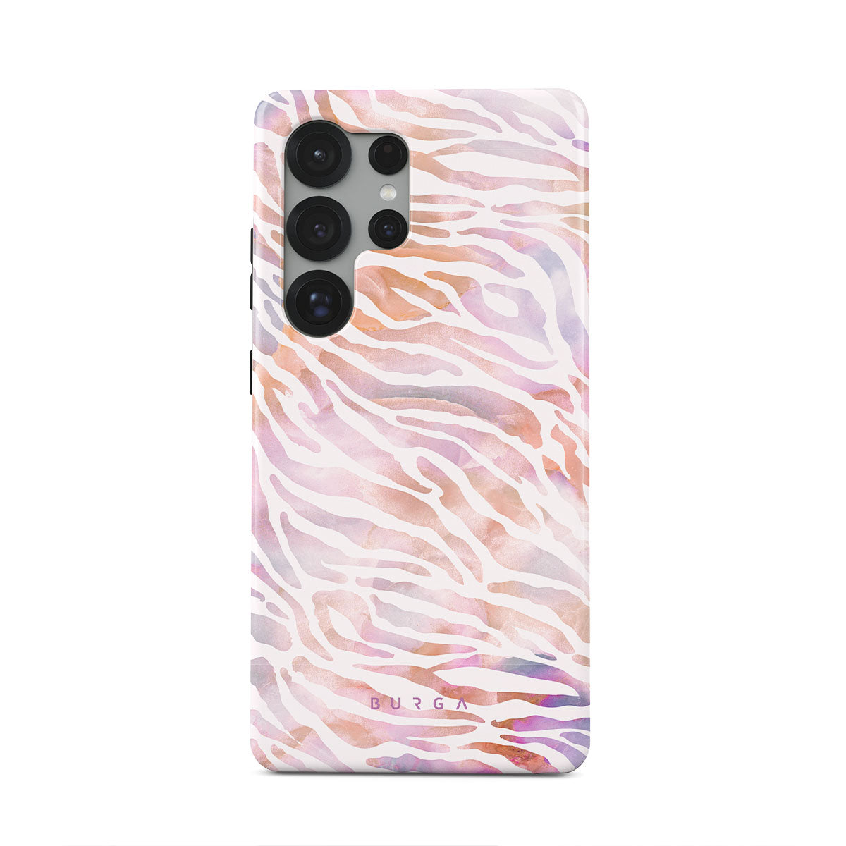 Sultry July Samsung Galaxy S25 Ultra phone case combines an exotic zebra pattern with the softest shades of pink. The Zebra pattern adds a touch of energy, while pinks will emphasize a softer side. This trendy phone case will keep your cellphone safe and sound from any falls or scratches.