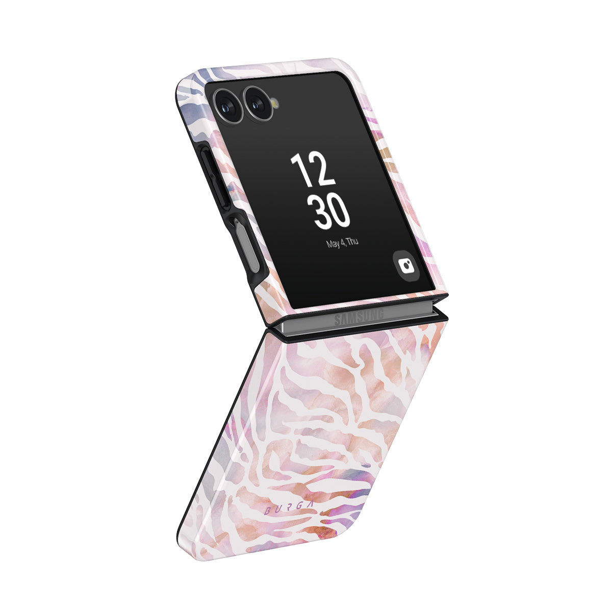 Sultry July Samsung Galaxy Z Flip 7 phone case combines an exotic zebra pattern with the softest shades of pink. The Zebra pattern adds a touch of energy, while pinks will emphasize a softer side. This trendy phone case will keep your cellphone safe and sound from any falls or scratches.