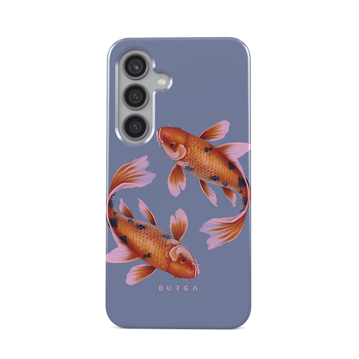 In the embrace of serene blue, the golden koi swirl, a symbol of life's fluid nature and the grace of going with the flow. Their dance is a serene meditation on the currents of destiny and the elegance of adapting with purpose. Discover our Zen Samsung Galaxy S24 phone case design.
